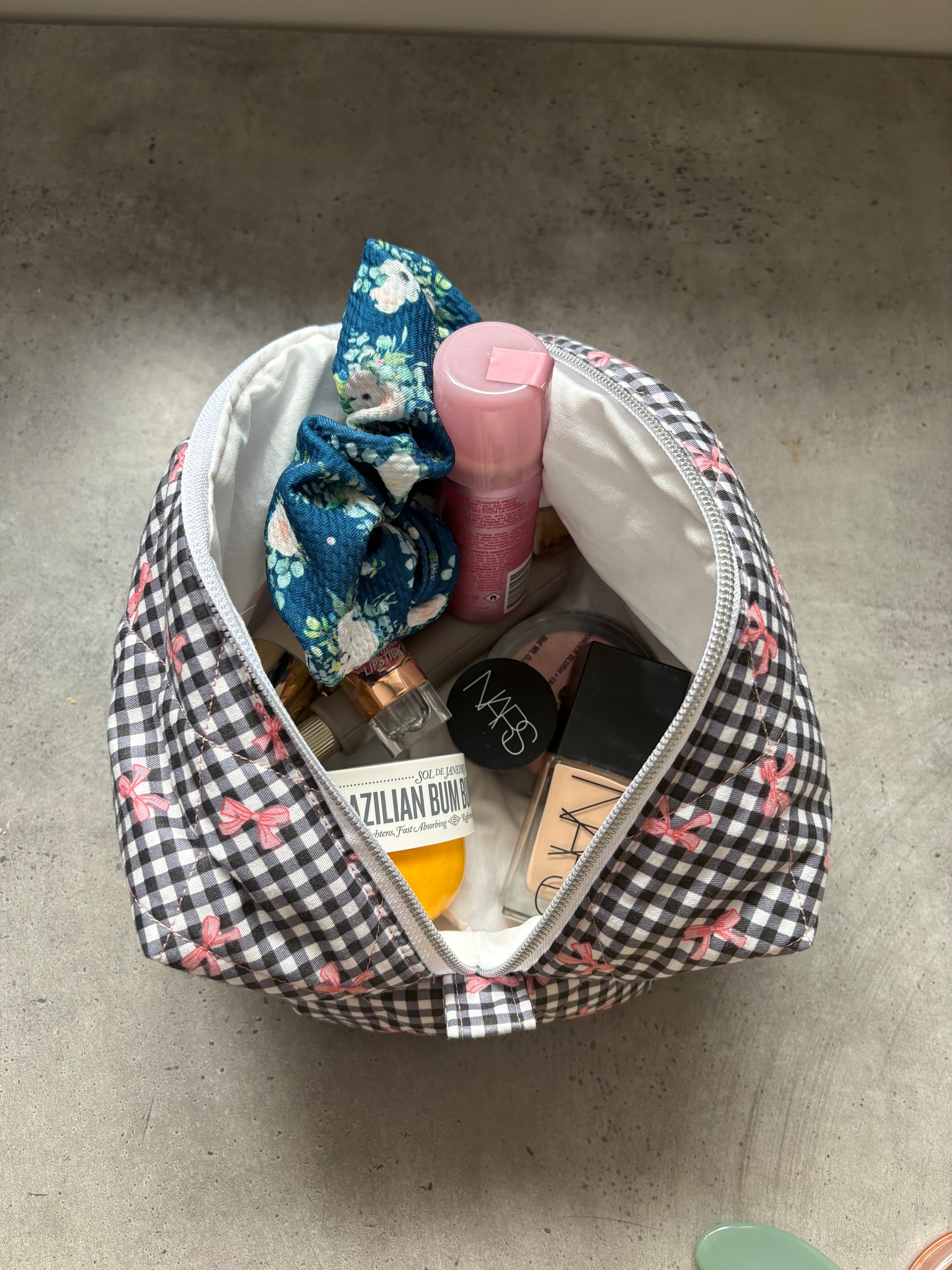 Pink bow boxy pouch (large)